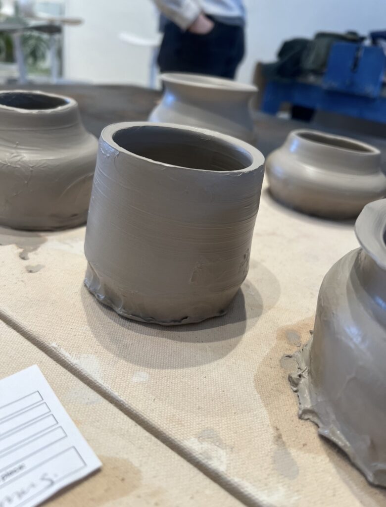 I few things had stuck with me from my first time throwing; I kept getting scared and releasing my hands to quickly, sending the pot into a spiralled broken chaos, and I was just generally moving to quickly. So I was sure to move slow, take my time, and be intentional. I surprisingly got the hang of it pretty quickly! Having 1/3 of the instructors attention was awesome, she was able to give me pointers before I realized I needed them, and answer any questions I had right away.